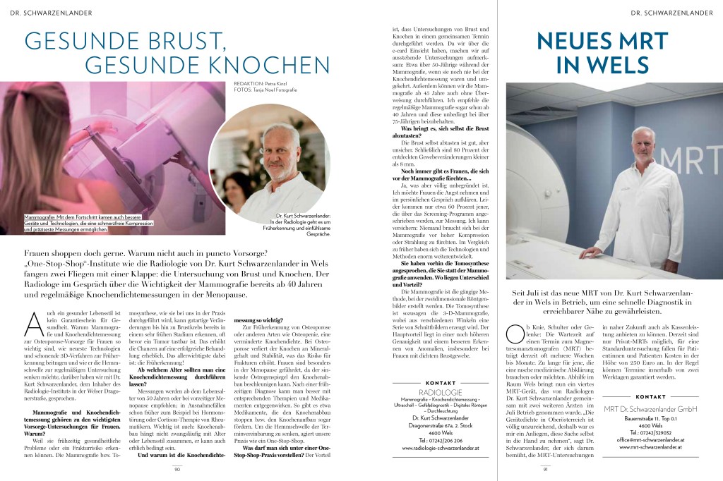 27. Mai 202524. November 2025Dr. Schwarzenlander Gesunde Brust – gesunde Knochen hier die Reportage aus der OberösterreicherIn! Teilen mit: Klicke, um auf X zu teilen (Wird in neuem Fenster geöffnet) X Klick, um auf Facebook zu teilen (Wird in neuem Fenster geöffnet) Facebook Gefällt mir Wird geladen … Ähnliche Beiträge