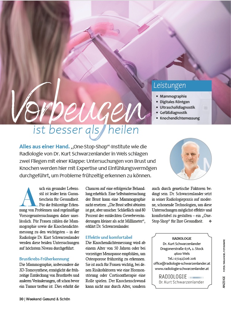 27. Februar 202627. Februar 2026Dr. Schwarzenlander Vorbeugen ist besser als heilen Artikel Weekend Magazin Ausgabe 2025 Teilen mit: Auf X teilen (Wird in neuem Fenster geöffnet) X Auf Facebook teilen (Wird in neuem Fenster geöffnet) Facebook Gefällt mir Wird geladen … Ähnliche Beiträge